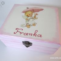 Kutija je drvena, domaće proizvodnje. Vanjska dimenzija je 14x16x8 cm. Unutarnja dimenzija je 13x15 cm. S unutarnje strane poklopca ide neki od ponuđenih tekstova ili tekst po želji uz nadoplatu. Umatanje u celofan je gratis.
